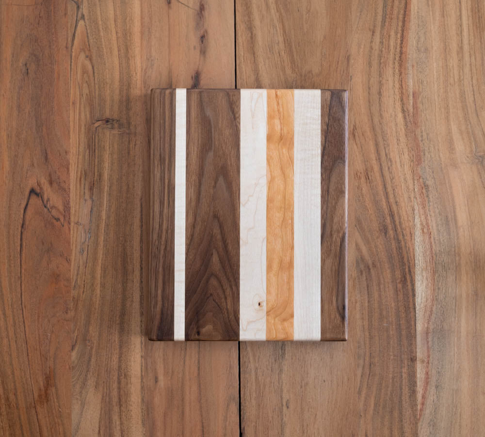 Board #6 features a three wood design of walnut, maple, and cherry. This board will make a perfect bar prep board, or small scale cutting board.